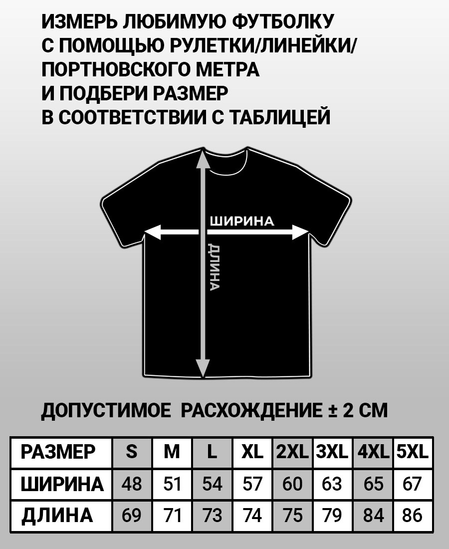 Каждая футболка печатается индивидуально под ваш заказ. Мы НЕ ОТПРАВЛЯЕМ футболки нескольких размеров на выбор для примерки.