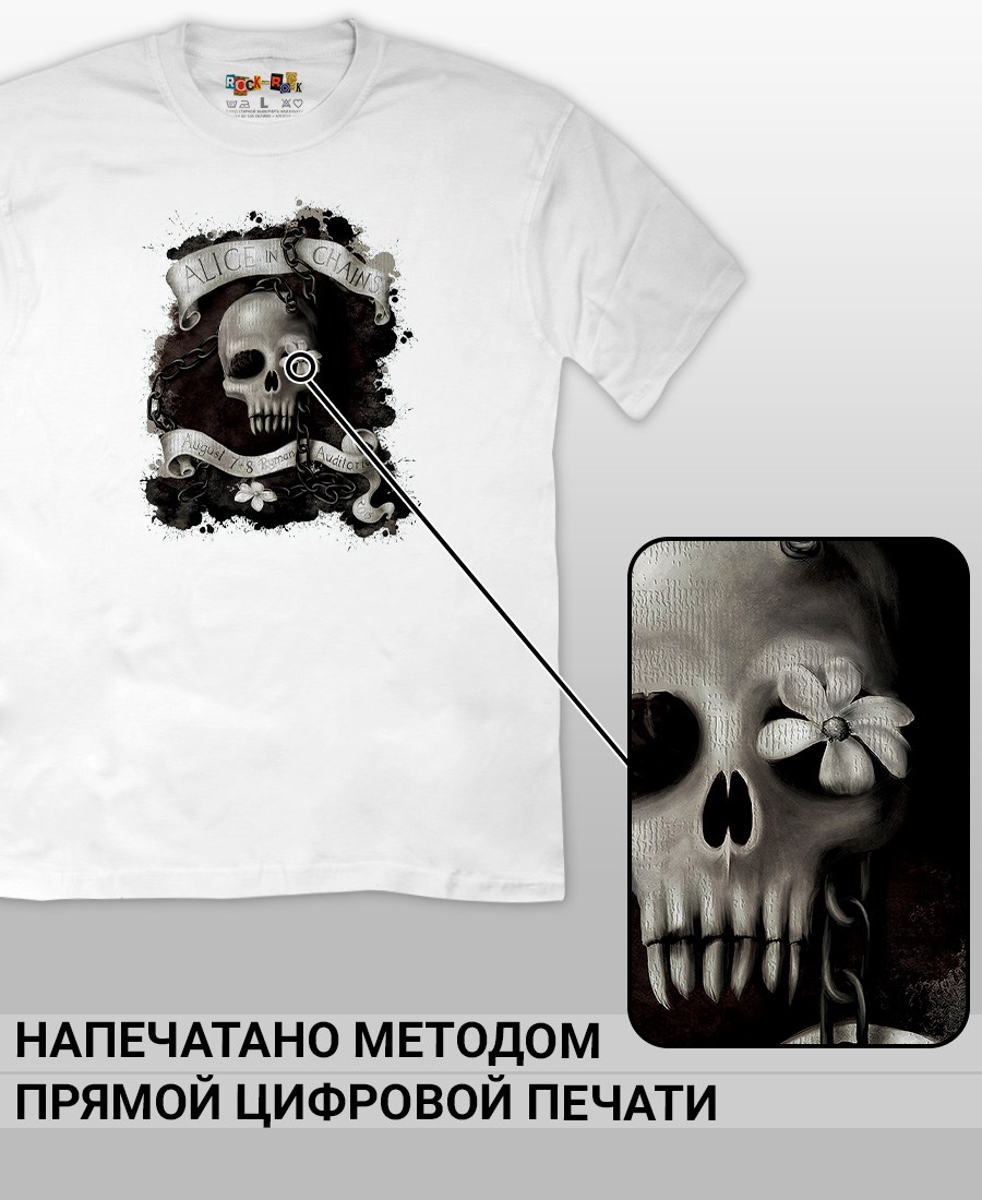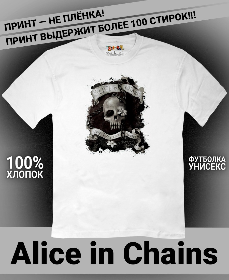 Футболка унисекс из 100% хлопка с рок-принтом Alice in Chains от бренда Rock-Rock - это идеальный выбор для поклонников группы и всех, кто ценит уникальный стиль. Эта мужская футболка изготовлена из высококачественного хлопка, обеспечивающего комфорт и долговечность. Подходит как мужчинам так и женшинам. Можно носить как оверсайз. Эта майка стильный и универсальный предмет одежды, который олицетворяет энергию и мощь рок-музыки. Уникальный рисунок с изображением Alice in Chains на передней части делает эту футболку не только повседневным аксессуаром, но и отличным подарком для друзей и близких. Сочетайте её с джинсами или шортами для создания стильного и современного образа. Футболка унисекс и подходит для мужчин, женщин и подростков, что делает его весьма универсальным. Она имеет свободный и комфортный крой, который можно использовать как oversize или оверсайз. Стильная футба с рок принтом будет прекрасным дополнением вашего образа и подчеркнет вашу индивидуальность. Рисунок, сделанный цифровой печатью, будет свежим акцентом вашего гардероба и привлечет внимание окружающих. Крутой принт добавляет оригинальности и энергии этому стильному предмету гардероба. Молодежная подростковая аудитория, байкеры, увлекающиеся роком, Nirvana, Guns n Roses, панк, Misfits, Nirvana и альтернативными стилями, AC/DC, Metallica оценит этот яркий и стильный вариант одежды. Кроме того, черная или белая мужская футба подходит для любителей эмо одежды, гранж и рок-стиля и её можно использовать как черную женскую футболку.