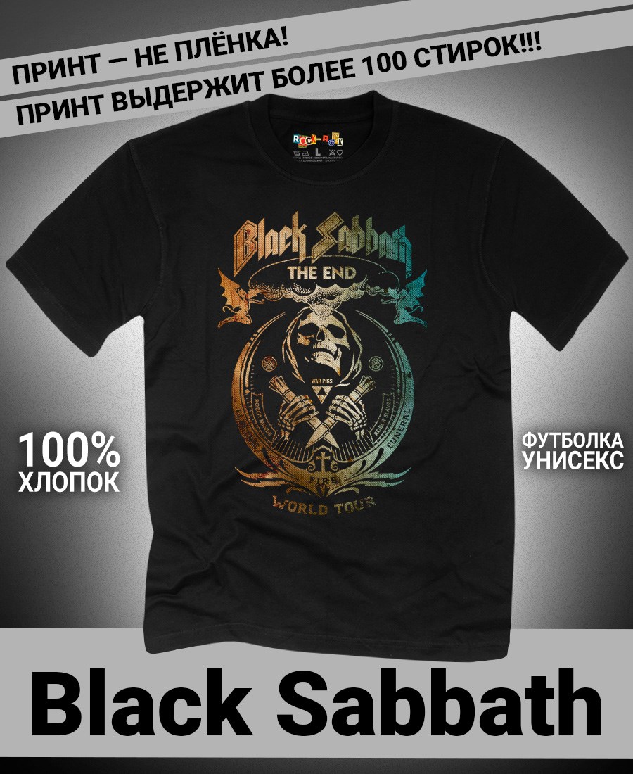 Футболка унисекс из 100% хлопка с рок-принтом Black Sabbath от бренда Rock-Rock - это идеальный выбор для поклонников группы и всех, кто ценит уникальный стиль. Эта мужская футболка изготовлена из высококачественного хлопка, обеспечивающего комфорт и долговечность. Подходит как мужчинам так и женшинам. Можно носить как оверсайз. Эта майка стильный и универсальный предмет одежды, который олицетворяет энергию и мощь рок-музыки. Уникальный рисунок с изображением Black Sabbath на передней части делает эту футболку не только повседневным аксессуаром, но и отличным подарком для друзей и близких. Сочетайте её с джинсами или шортами для создания стильного и современного образа. Футболка унисекс и подходит для мужчин, женщин и подростков, что делает его весьма универсальным. Она имеет свободный и комфортный крой, который можно использовать как oversize или оверсайз. Стильная футба с рок принтом будет прекрасным дополнением вашего образа и подчеркнет вашу индивидуальность. Рисунок, сделанный цифровой печатью, будет свежим акцентом вашего гардероба и привлечет внимание окружающих. Крутой принт добавляет оригинальности и энергии этому стильному предмету гардероба. Молодежная подростковая аудитория, байкеры, увлекающиеся роком, Nirvana, Guns n Roses, панк, Misfits, Nirvana и альтернативными стилями, AC/DC, Metallica оценит этот яркий и стильный вариант одежды. Кроме того, черная или белая мужская футба подходит для любителей эмо одежды, гранж и рок-стиля и её можно использовать как черную женскую футболку.
