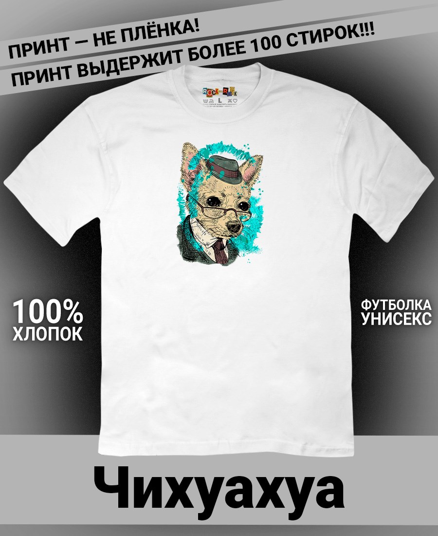 Футболка унисекс из 100% хлопка с шикарным принтом Чихуахуа от бренда Rock-Rock - это идеальный выбор для поклонников собак породы Чихуахуа и всех, кто ценит уникальный стиль. Эта мужская футболка изготовлена из высококачественного хлопка, обеспечивающего комфорт и долговечность. Подходит как мужчинам так и женщинам. Можно носить как оверсайз. Уникальный рисунок с изображением Чихуахуа на передней части делает эту футболку не только повседневным аксессуаром, но и отличным подарком для друзей и близких. Сочетайте её с джинсами или шортами для создания стильного и современного образа. Футболка унисекс и подходит для мужчин, женщин и подростков, что делает его весьма универсальным. Она имеет свободный и комфортный крой, который можно использовать как oversize или оверсайз. Стильная футба с принтом с собакой будет прекрасным дополнением вашего образа и подчеркнет вашу индивидуальность. Рисунок, сделанный цифровой печатью, будет свежим акцентом вашего гардероба и привлечет внимание окружающих. Крутой принт добавляет оригинальности и энергии этому стильному предмету гардероба. Молодежная подростковая аудитория, любители собак, Вельш-корги, Спаниель, Лабрадор-ретривер, Американский стаффордширский терьер, Доберман, Золотистый ретривер, Бигль, Мопс, Такса, Цвергпинчер, Бультерьер, Ши-цу, Корги, Сиба-Ину, Бульдог, Шпиц, Уиппет, Ретривер, Питбуль, Далматинец.