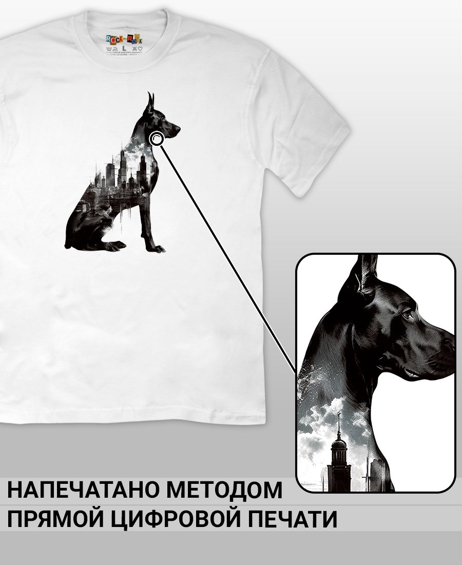 Футболка унисекс из 100% хлопка с шикарным принтом Доберман от бренда Rock-Rock - это идеальный выбор для поклонников собак породы Доберман и всех, кто ценит уникальный стиль. Эта мужская футболка изготовлена из высококачественного хлопка, обеспечивающего комфорт и долговечность. Подходит как мужчинам так и женщинам. Можно носить как оверсайз. Уникальный рисунок с изображением Доберман на передней части делает эту футболку не только повседневным аксессуаром, но и отличным подарком для друзей и близких. Сочетайте её с джинсами или шортами для создания стильного и современного образа. Футболка унисекс и подходит для мужчин, женщин и подростков, что делает его весьма универсальным. Она имеет свободный и комфортный крой, который можно использовать как oversize или оверсайз. Стильная футба с принтом с собакой будет прекрасным дополнением вашего образа и подчеркнет вашу индивидуальность. Рисунок, сделанный цифровой печатью, будет свежим акцентом вашего гардероба и привлечет внимание окружающих. Крутой принт добавляет оригинальности и энергии этому стильному предмету гардероба. Молодежная подростковая аудитория, любители собак, Вельш-корги, Спаниель, Лабрадор-ретривер, Американский стаффордширский терьер, Доберман, Золотистый ретривер, Бигль, Мопс, Такса, Цвергпинчер, Бультерьер, Ши-цу, Корги, Сиба-Ину, Бульдог, Шпиц, Уиппет, Ретривер, Питбуль, Далматинец.