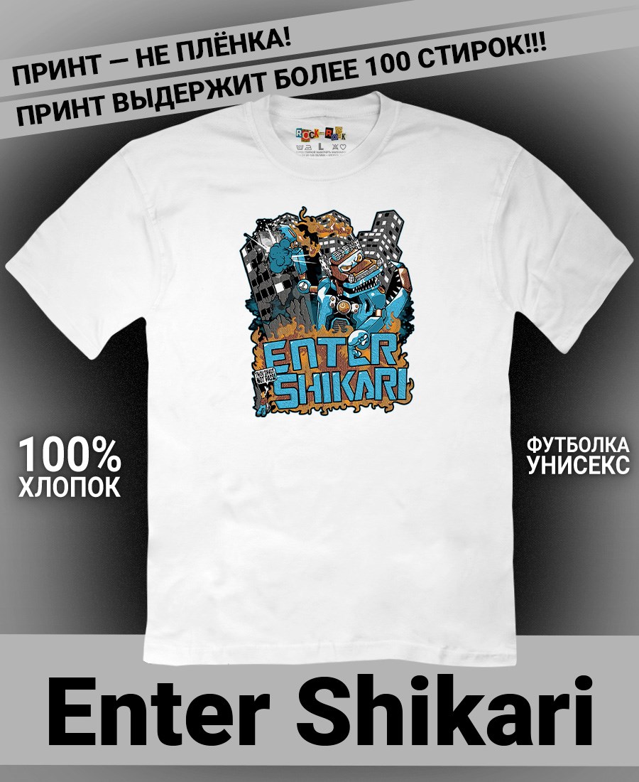 Футболка унисекс из 100% хлопка с рок-принтом Enter Shikari от бренда Rock-Rock - это идеальный выбор для поклонников группы и всех, кто ценит уникальный стиль. Эта мужская футболка изготовлена из высококачественного хлопка, обеспечивающего комфорт и долговечность. Подходит как мужчинам так и женшинам. Можно носить как оверсайз. Эта майка стильный и универсальный предмет одежды, который олицетворяет энергию и мощь рок-музыки. Уникальный рисунок с изображением Enter Shikari на передней части делает эту футболку не только повседневным аксессуаром, но и отличным подарком для друзей и близких. Сочетайте её с джинсами или шортами для создания стильного и современного образа. Футболка унисекс и подходит для мужчин, женщин и подростков, что делает его весьма универсальным. Она имеет свободный и комфортный крой, который можно использовать как oversize или оверсайз. Стильная футба с рок принтом будет прекрасным дополнением вашего образа и подчеркнет вашу индивидуальность. Рисунок, сделанный цифровой печатью, будет свежим акцентом вашего гардероба и привлечет внимание окружающих. Крутой принт добавляет оригинальности и энергии этому стильному предмету гардероба. Молодежная подростковая аудитория, байкеры, увлекающиеся роком, Nirvana, Guns n Roses, панк, Misfits, Nirvana и альтернативными стилями, AC/DC, Metallica оценит этот яркий и стильный вариант одежды. Кроме того, черная или белая мужская футба подходит для любителей эмо одежды, гранж и рок-стиля и её можно использовать как черную женскую футболку.