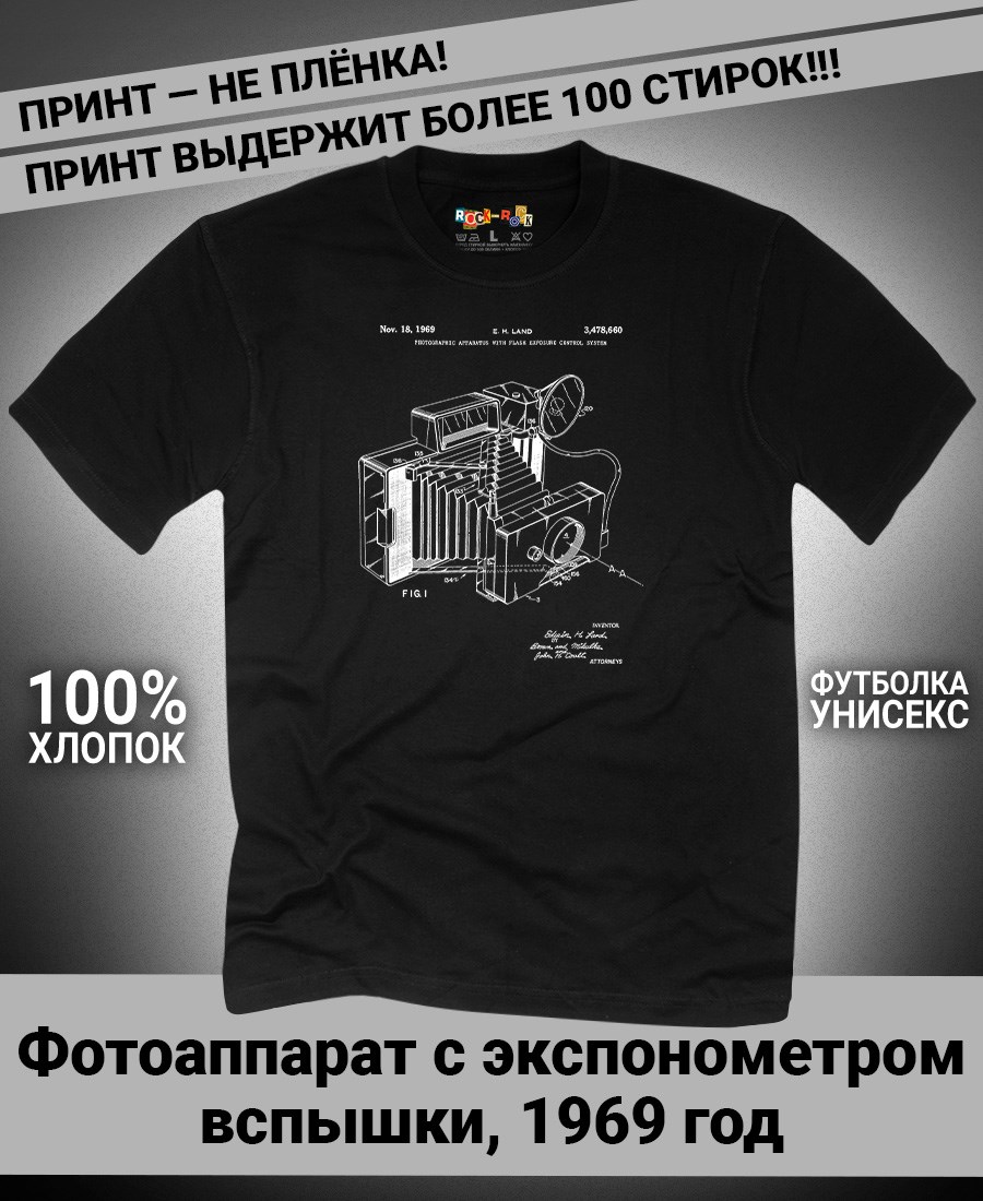 Футболки унисекс, чёрные и белые футболки с изображением патента Фотоаппарат с экспонометром вспышки, 1969 год. Эта модель футболки подходит как мужчинам, так и женщинам, а также адаптируется к различным типам фигуры. Наши принты выполнены методом полноцветной цифровой печати, что обеспечивает высокую износостойкость и насыщенность цветов. Ткань из 100 % хлопка и качественная печать гарантируют сохранение цвета и формы изделия после более чем 100 стирок. В этой серии представлены футболки с патентами на фотоаппараты, кинетоскопы, телевизионный аппарат с конца XIX по начало XX века. Также у нас есть футболки с изображениями патентов на тему Авто, Авиация; Видео и фото; Деньги; Игры и игрушки; Мода, стиль, красота; Мореплавание; Мото и вело; Музыка; Оружие и охота; Профессии и призвания. Ищите также по запросам: футболка для мужчин, мужские футболки, крутая футболка, футболка женская с принтом, футболка мужская с принтом, футболка на день рождения, необычная футболка, необычный подарок, футболка на вечеринку, качественная футболка, шикарная футболка, модная футболка, футболка для подарка, крутая футболка, футболка хайп, подарок парню, подарок девушке, подарок фотографу, подарок инженеру, футболка фотолюбителю, футболка блоггеру, футболка оператору, футболка киношнику, футболка стимпанк, ретро стиль, винтажная электроника, старые фотоаппараты, кинокамеры, ностальгия по 80-м, аналоговая эстетика, олдскул техника.