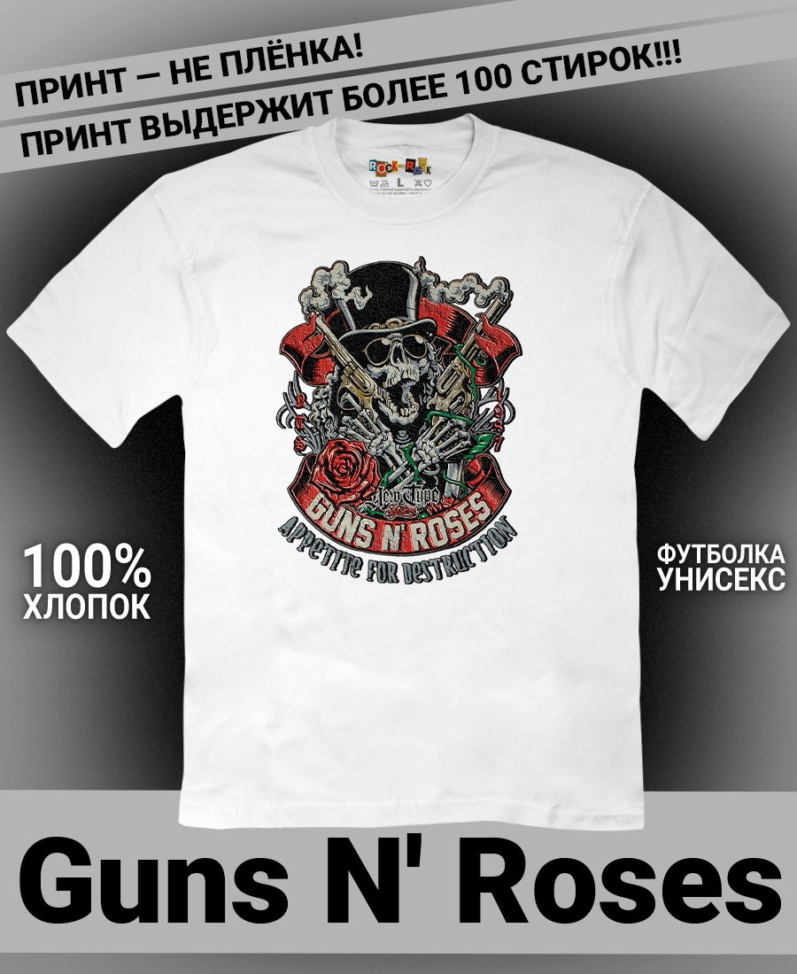 Футболка унисекс из 100% хлопка с рок-принтом Guns N' Roses от бренда Rock-Rock - это идеальный выбор для поклонников группы и всех, кто ценит уникальный стиль. Эта мужская футболка изготовлена из высококачественного хлопка, обеспечивающего комфорт и долговечность. Подходит как мужчинам так и женшинам. Можно носить как оверсайз. Эта майка стильный и универсальный предмет одежды, который олицетворяет энергию и мощь рок-музыки. Уникальный рисунок с изображением Guns N' Roses на передней части делает эту футболку не только повседневным аксессуаром, но и отличным подарком для друзей и близких. Сочетайте её с джинсами или шортами для создания стильного и современного образа. Футболка унисекс и подходит для мужчин, женщин и подростков, что делает его весьма универсальным. Она имеет свободный и комфортный крой, который можно использовать как oversize или оверсайз. Стильная футба с рок принтом будет прекрасным дополнением вашего образа и подчеркнет вашу индивидуальность. Рисунок, сделанный цифровой печатью, будет свежим акцентом вашего гардероба и привлечет внимание окружающих. Крутой принт добавляет оригинальности и энергии этому стильному предмету гардероба. Молодежная подростковая аудитория, байкеры, увлекающиеся роком, Nirvana, Guns n Roses, панк, Misfits, Nirvana и альтернативными стилями, AC/DC, Metallica оценит этот яркий и стильный вариант одежды. Кроме того, черная или белая мужская футба подходит для любителей эмо одежды, гранж и рок-стиля и её можно использовать как черную женскую футболку.