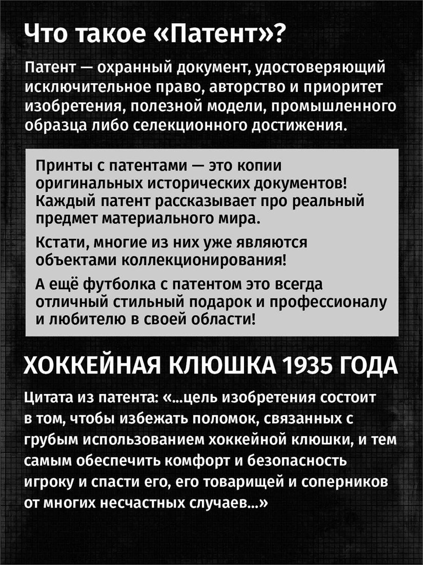Футболки унисекс, чёрные и белые футболки с изображением патента Футболка Хоккейная клюшка, 1935 год. Эта модель футболки подходит как мужчинам, так и женщинам, а также адаптируется к различным типам фигуры. Наши принты выполнены методом полноцветной цифровой печати, что обеспечивает высокую износостойкость и насыщенность цветов. Ткань из 100 % хлопка и качественная печать гарантируют сохранение цвета и формы изделия после более чем 100 стирок. В этой серии представлены футболки с патентами на футбольные бутсы, футбольный мяч, боксёрский мешок, боксёрские перчатки, баскетбольную корзину, роликовые коньки, гантель, ледовые коньки, ракетку, хоккейные ботинки, хоккейную клюшку. Также у нас есть футболки с изображениями патентов на тему Авто, Авиация; Видео и фото; Деньги; Игры и игрушки; Мода, стиль, красота; Мореплавание; Мото и вело; Музыка; Оружие и охота; Профессии и призвания. Ищите также по запросам: футболка для мужчин, мужские футболки, крутая футболка, футболка женская с принтом, футболка мужская с принтом, футболка на день рождения, необычная футболка, необычный подарок, футболка на вечеринку, качественная футболка, шикарная футболка, модная футболка, футболка для подарка, крутая футболка, футболка хайп, подарок парню, подарок коллекционеру, подарок спортсмену, подарок футболисту, подарок хоккеисту, подарок фигуристу, подарок для стрелка, подарок тенниситу, подарок баскетболисту, подарок фитнес-тренеру, ретро стиль, винтажная, ностальгия, аналоговая эстетика, олдскул техника.