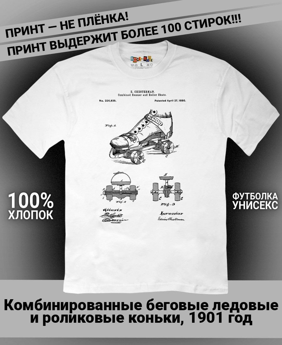 Футболка Комбинированные беговые ледовые и роликовые коньки, 1880 год