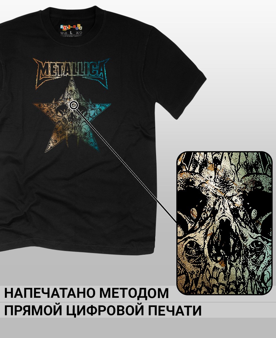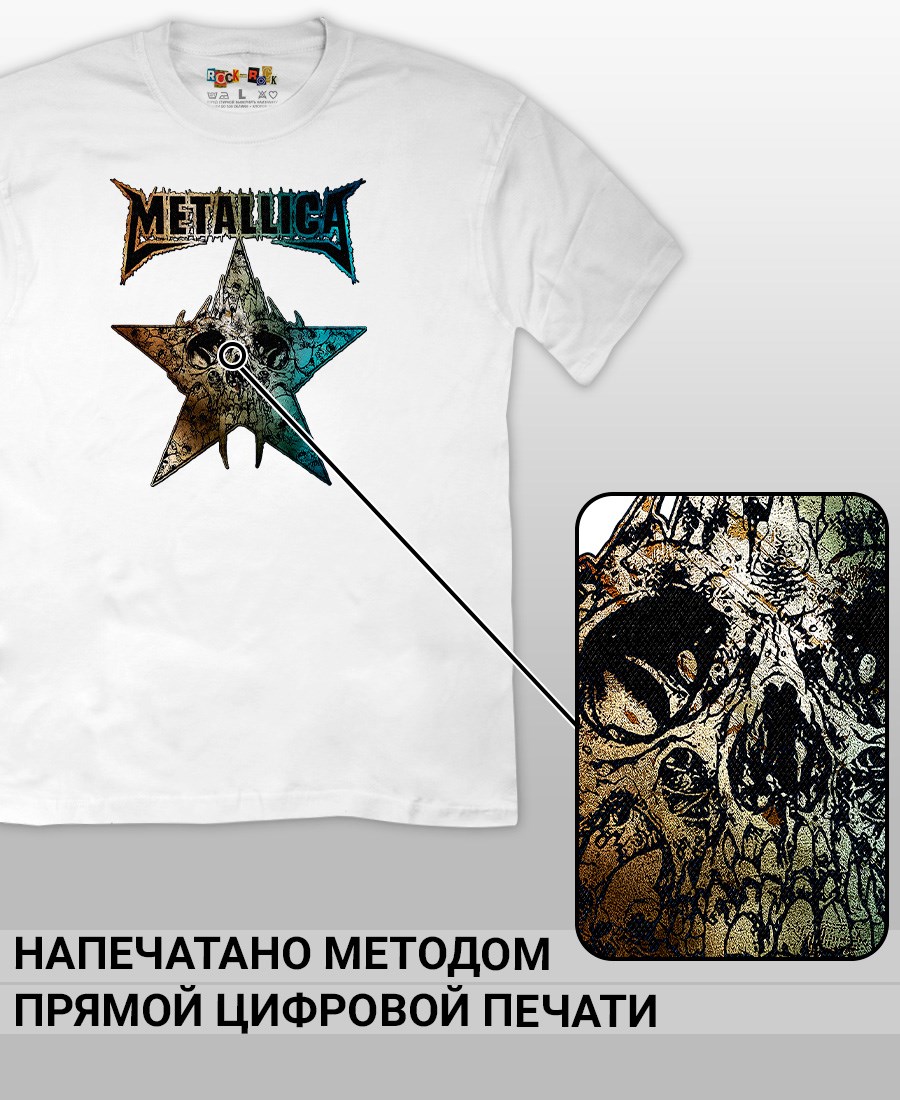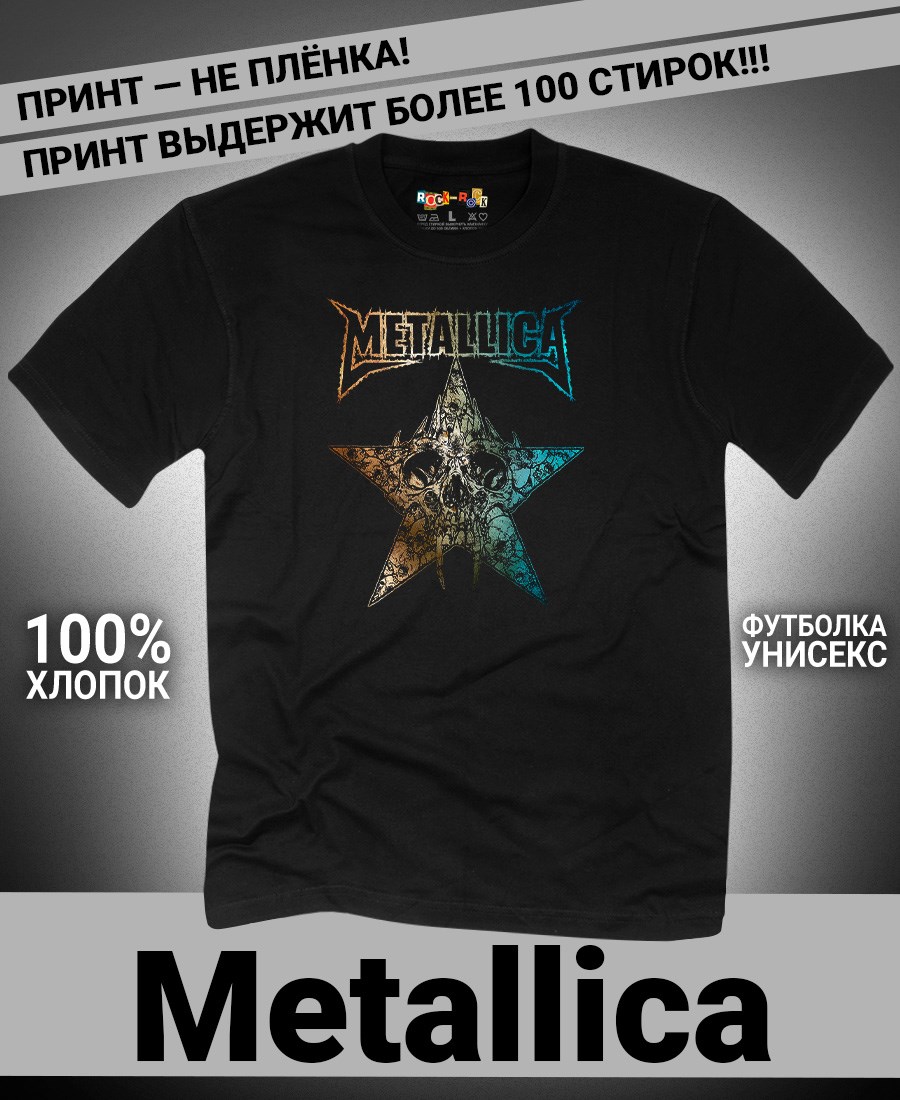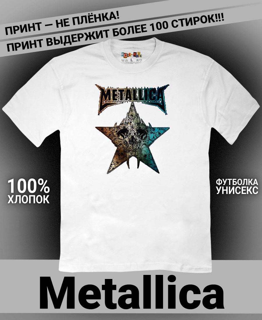 Футболка унисекс из 100% хлопка с рок-принтом Metallica от бренда Rock-Rock - это идеальный выбор для поклонников группы и всех, кто ценит уникальный стиль. Эта мужская футболка изготовлена из высококачественного хлопка, обеспечивающего комфорт и долговечность. Подходит как мужчинам так и женшинам. Можно носить как оверсайз. Эта майка стильный и универсальный предмет одежды, который олицетворяет энергию и мощь рок-музыки. Уникальный рисунок с изображением Metallica на передней части делает эту футболку не только повседневным аксессуаром, но и отличным подарком для друзей и близких. Сочетайте её с джинсами или шортами для создания стильного и современного образа. Футболка унисекс и подходит для мужчин, женщин и подростков, что делает его весьма универсальным. Она имеет свободный и комфортный крой, который можно использовать как oversize или оверсайз. Стильная футба с рок принтом будет прекрасным дополнением вашего образа и подчеркнет вашу индивидуальность. Рисунок, сделанный цифровой печатью, будет свежим акцентом вашего гардероба и привлечет внимание окружающих. Крутой принт добавляет оригинальности и энергии этому стильному предмету гардероба. Молодежная подростковая аудитория, байкеры, увлекающиеся роком, Nirvana, Guns n Roses, панк, Misfits, Nirvana и альтернативными стилями, AC/DC, Metallica оценит этот яркий и стильный вариант одежды. Кроме того, черная или белая мужская футба подходит для любителей эмо одежды, гранж и рок-стиля и её можно использовать как черную женскую футболку.