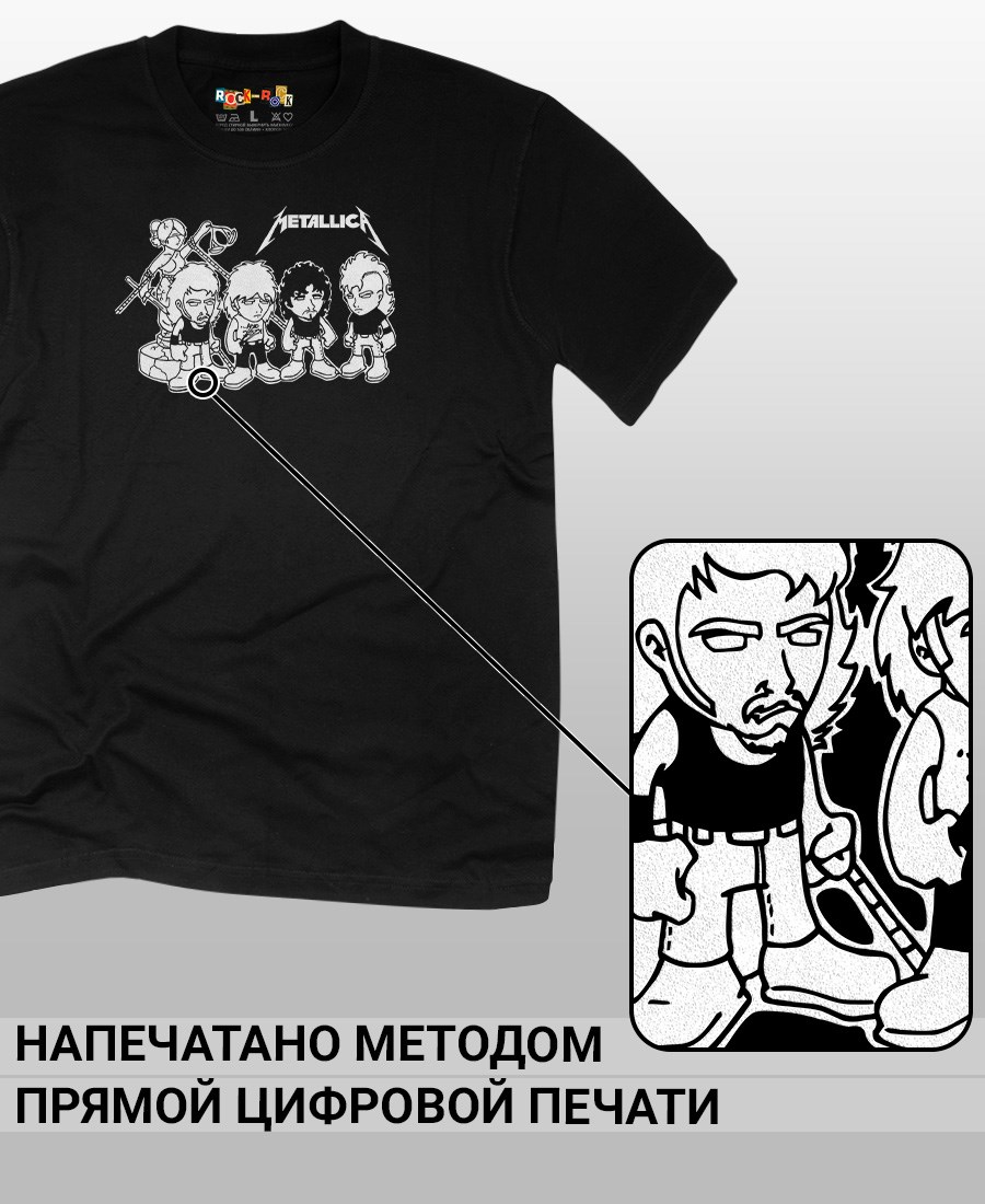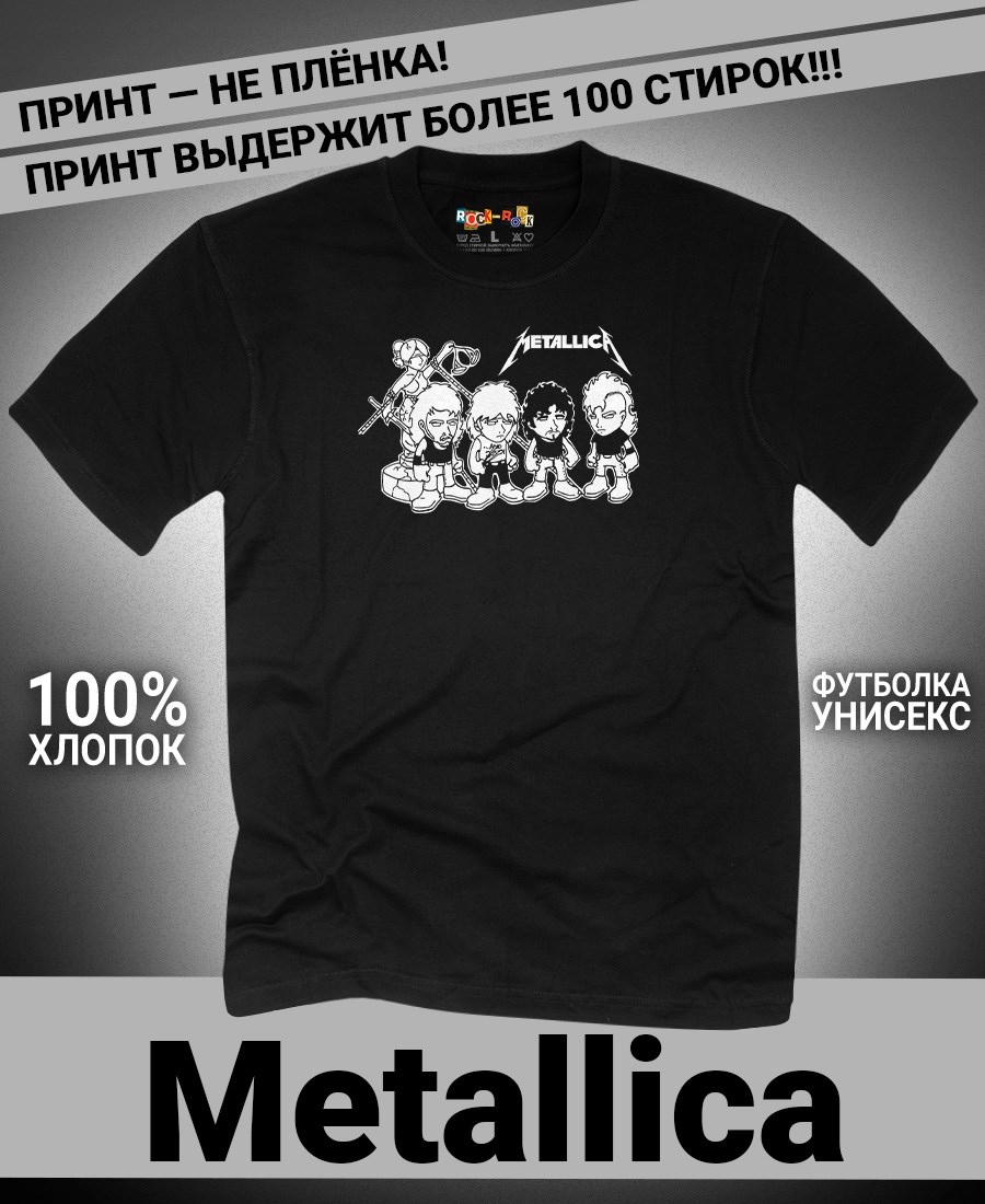 Футболка унисекс из 100% хлопка с рок-принтом Metallica от бренда Rock-Rock - это идеальный выбор для поклонников группы и всех, кто ценит уникальный стиль. Эта мужская футболка изготовлена из высококачественного хлопка, обеспечивающего комфорт и долговечность. Подходит как мужчинам так и женшинам. Можно носить как оверсайз. Эта майка стильный и универсальный предмет одежды, который олицетворяет энергию и мощь рок-музыки. Уникальный рисунок с изображением Metallica на передней части делает эту футболку не только повседневным аксессуаром, но и отличным подарком для друзей и близких. Сочетайте её с джинсами или шортами для создания стильного и современного образа. Футболка унисекс и подходит для мужчин, женщин и подростков, что делает его весьма универсальным. Она имеет свободный и комфортный крой, который можно использовать как oversize или оверсайз. Стильная футба с рок принтом будет прекрасным дополнением вашего образа и подчеркнет вашу индивидуальность. Рисунок, сделанный цифровой печатью, будет свежим акцентом вашего гардероба и привлечет внимание окружающих. Крутой принт добавляет оригинальности и энергии этому стильному предмету гардероба. Молодежная подростковая аудитория, байкеры, увлекающиеся роком, Nirvana, Guns n Roses, панк, Misfits, Nirvana и альтернативными стилями, AC/DC, Metallica оценит этот яркий и стильный вариант одежды. Кроме того, черная или белая мужская футба подходит для любителей эмо одежды, гранж и рок-стиля и её можно использовать как черную женскую футболку.