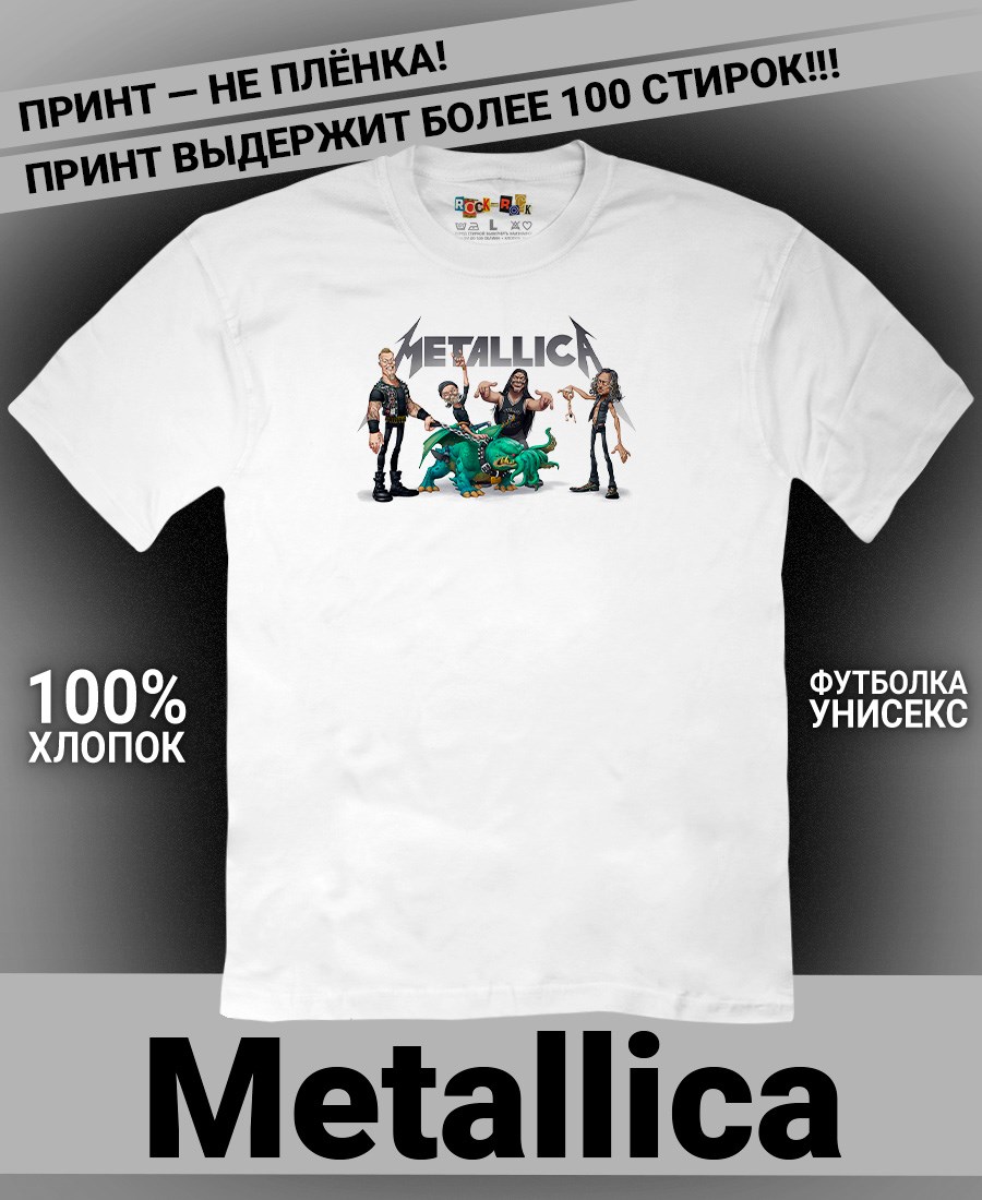 Футболка унисекс из 100% хлопка с рок-принтом Metallica от бренда Rock-Rock - это идеальный выбор для поклонников группы и всех, кто ценит уникальный стиль. Эта мужская футболка изготовлена из высококачественного хлопка, обеспечивающего комфорт и долговечность. Подходит как мужчинам так и женшинам. Можно носить как оверсайз. Эта майка стильный и универсальный предмет одежды, который олицетворяет энергию и мощь рок-музыки. Уникальный рисунок с изображением Metallica на передней части делает эту футболку не только повседневным аксессуаром, но и отличным подарком для друзей и близких. Сочетайте её с джинсами или шортами для создания стильного и современного образа. Футболка унисекс и подходит для мужчин, женщин и подростков, что делает его весьма универсальным. Она имеет свободный и комфортный крой, который можно использовать как oversize или оверсайз. Стильная футба с рок принтом будет прекрасным дополнением вашего образа и подчеркнет вашу индивидуальность. Рисунок, сделанный цифровой печатью, будет свежим акцентом вашего гардероба и привлечет внимание окружающих. Крутой принт добавляет оригинальности и энергии этому стильному предмету гардероба. Молодежная подростковая аудитория, байкеры, увлекающиеся роком, Nirvana, Guns n Roses, панк, Misfits, Nirvana и альтернативными стилями, AC/DC, Metallica оценит этот яркий и стильный вариант одежды. Кроме того, черная или белая мужская футба подходит для любителей эмо одежды, гранж и рок-стиля и её можно использовать как черную женскую футболку.