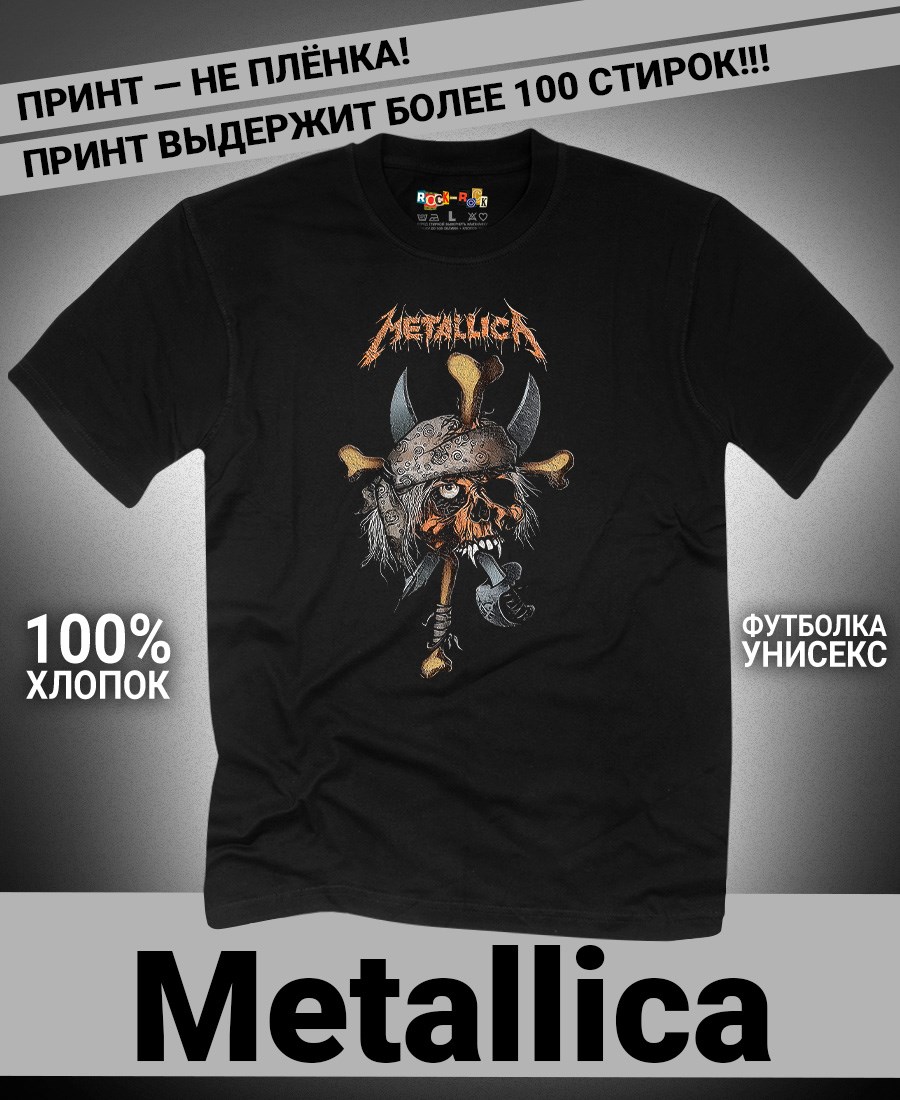 Футболка унисекс из 100% хлопка с рок-принтом Metallica от бренда Rock-Rock - это идеальный выбор для поклонников группы и всех, кто ценит уникальный стиль. Эта мужская футболка изготовлена из высококачественного хлопка, обеспечивающего комфорт и долговечность. Подходит как мужчинам так и женшинам. Можно носить как оверсайз. Эта майка стильный и универсальный предмет одежды, который олицетворяет энергию и мощь рок-музыки. Уникальный рисунок с изображением Metallica на передней части делает эту футболку не только повседневным аксессуаром, но и отличным подарком для друзей и близких. Сочетайте её с джинсами или шортами для создания стильного и современного образа. Футболка унисекс и подходит для мужчин, женщин и подростков, что делает его весьма универсальным. Она имеет свободный и комфортный крой, который можно использовать как oversize или оверсайз. Стильная футба с рок принтом будет прекрасным дополнением вашего образа и подчеркнет вашу индивидуальность. Рисунок, сделанный цифровой печатью, будет свежим акцентом вашего гардероба и привлечет внимание окружающих. Крутой принт добавляет оригинальности и энергии этому стильному предмету гардероба. Молодежная подростковая аудитория, байкеры, увлекающиеся роком, Nirvana, Guns n Roses, панк, Misfits, Nirvana и альтернативными стилями, AC/DC, Metallica оценит этот яркий и стильный вариант одежды. Кроме того, черная или белая мужская футба подходит для любителей эмо одежды, гранж и рок-стиля и её можно использовать как черную женскую футболку.
