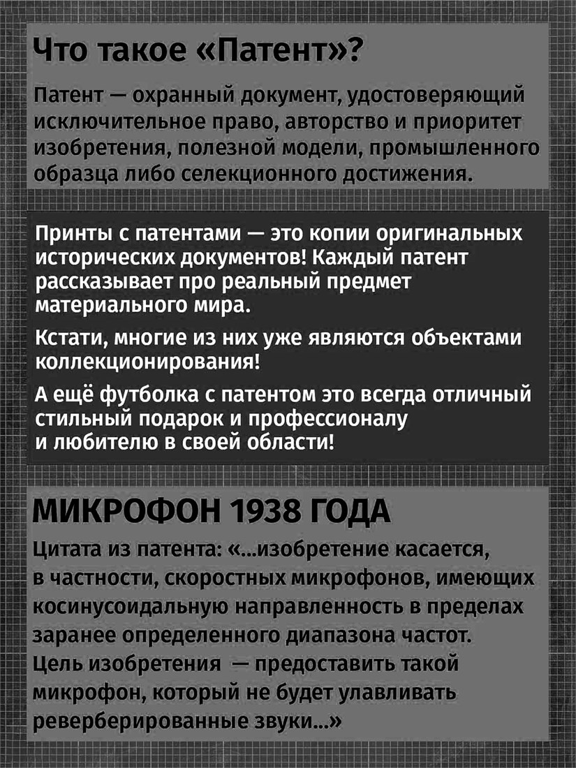 Футболки унисекс, чёрные и белые футболки с изображением патента Микрофон, 1938 год. Эта модель футболки подходит как мужчинам, так и женщинам, а также адаптируется к различным типам фигуры. Наши принты выполнены методом полноцветной цифровой печати, что обеспечивает высокую износостойкость и насыщенность цветов. Ткань из 100 % хлопка и качественная печать гарантируют сохранение цвета и формы изделия после более чем 100 стирок. В этой серии представлены футболки с патентами на фортепиано, барабанные установки, гитары, аккордеон, банджо, микрофон, граммофон. Также у нас есть футболки с изображениями патентов на тему Авто, Авиация; Видео и фото; Деньги; Игры и игрушки; Мода, стиль, красота; Мореплавание; Мото и вело; Музыка; Оружие и охота; Профессии и призвания. Ищите также по запросам: футболка для мужчин, мужские футболки, крутая футболка, футболка женская с принтом, футболка мужская с принтом, футболка на день рождения, необычная футболка, необычный подарок, футболка на вечеринку, качественная футболка, шикарная футболка, модная футболка, футболка для подарка, крутая футболка, футболка хайп, подарок парню, подарок девушке, подарок коллекционеру, подарок музыканту, подарок гитаристу, подарок барабанщику, подарок аккордионисту, подарок рокеру, подарок пионисту, футболка музыканта, футболка музыка, ретро стиль, винтажная, ностальгия, аналоговая эстетика, олдскул техника.