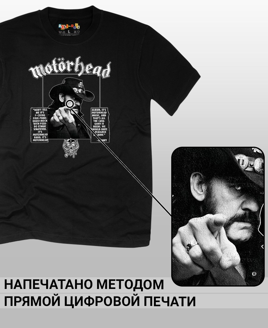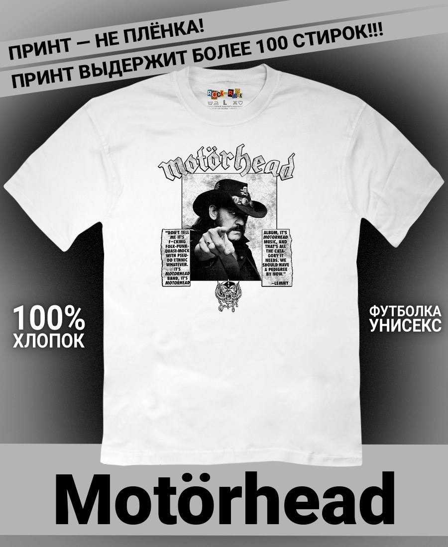 Футболка унисекс из 100% хлопка с рок-принтом Motorhead от бренда Rock-Rock - это идеальный выбор для поклонников группы и всех, кто ценит уникальный стиль. Эта мужская футболка изготовлена из высококачественного хлопка, обеспечивающего комфорт и долговечность. Подходит как мужчинам так и женшинам. Можно носить как оверсайз. Эта майка стильный и универсальный предмет одежды, который олицетворяет энергию и мощь рок-музыки. Уникальный рисунок с изображением Motorhead на передней части делает эту футболку не только повседневным аксессуаром, но и отличным подарком для друзей и близких. Сочетайте её с джинсами или шортами для создания стильного и современного образа. Футболка унисекс и подходит для мужчин, женщин и подростков, что делает его весьма универсальным. Она имеет свободный и комфортный крой, который можно использовать как oversize или оверсайз. Стильная футба с рок принтом будет прекрасным дополнением вашего образа и подчеркнет вашу индивидуальность. Рисунок, сделанный цифровой печатью, будет свежим акцентом вашего гардероба и привлечет внимание окружающих. Крутой принт добавляет оригинальности и энергии этому стильному предмету гардероба. Молодежная подростковая аудитория, байкеры, увлекающиеся роком, Nirvana, Guns n Roses, панк, Misfits, Nirvana и альтернативными стилями, AC/DC, Metallica оценит этот яркий и стильный вариант одежды. Кроме того, черная или белая мужская футба подходит для любителей эмо одежды, гранж и рок-стиля и её можно использовать как черную женскую футболку.