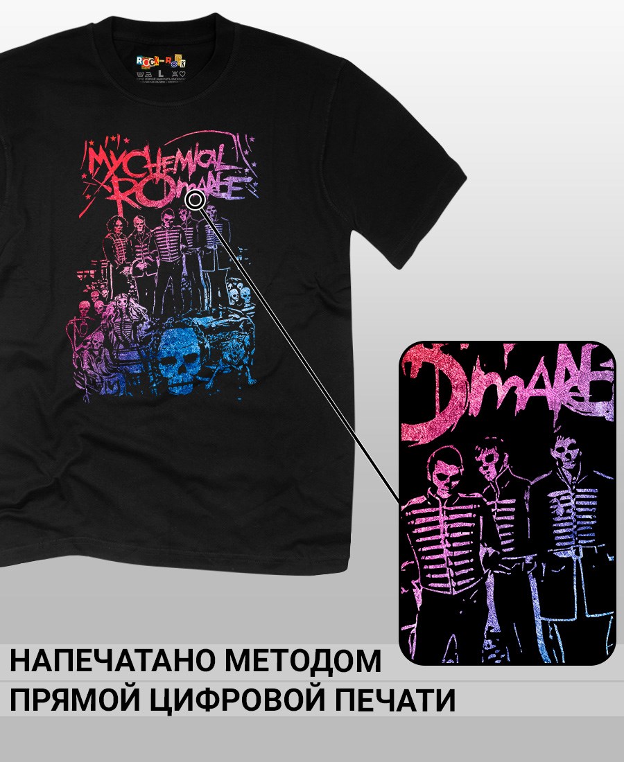 Футболка унисекс из 100% хлопка с рок-принтом My Chemical Romance от бренда Rock-Rock - это идеальный выбор для поклонников группы и всех, кто ценит уникальный стиль. Эта мужская футболка изготовлена из высококачественного хлопка, обеспечивающего комфорт и долговечность. Подходит как мужчинам так и женшинам. Можно носить как оверсайз. Эта майка стильный и универсальный предмет одежды, который олицетворяет энергию и мощь рок-музыки. Уникальный рисунок с изображением My Chemical Romance на передней части делает эту футболку не только повседневным аксессуаром, но и отличным подарком для друзей и близких. Сочетайте её с джинсами или шортами для создания стильного и современного образа. Футболка унисекс и подходит для мужчин, женщин и подростков, что делает его весьма универсальным. Она имеет свободный и комфортный крой, который можно использовать как oversize или оверсайз. Стильная футба с рок принтом будет прекрасным дополнением вашего образа и подчеркнет вашу индивидуальность. Рисунок, сделанный цифровой печатью, будет свежим акцентом вашего гардероба и привлечет внимание окружающих. Крутой принт добавляет оригинальности и энергии этому стильному предмету гардероба. Молодежная подростковая аудитория, байкеры, увлекающиеся роком, Nirvana, Guns n Roses, панк, Misfits, Nirvana и альтернативными стилями, AC/DC, Metallica оценит этот яркий и стильный вариант одежды. Кроме того, черная или белая мужская футба подходит для любителей эмо одежды, гранж и рок-стиля и её можно использовать как черную женскую футболку.