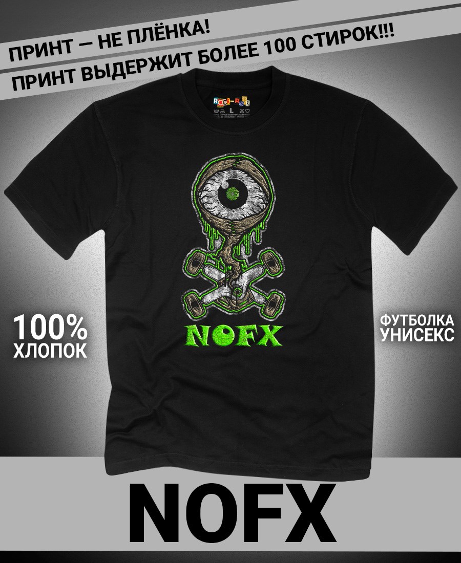 Футболка унисекс из 100% хлопка с рок-принтом NOFX от бренда Rock-Rock - это идеальный выбор для поклонников группы и всех, кто ценит уникальный стиль. Эта мужская футболка изготовлена из высококачественного хлопка, обеспечивающего комфорт и долговечность. Подходит как мужчинам так и женшинам. Можно носить как оверсайз. Эта майка стильный и универсальный предмет одежды, который олицетворяет энергию и мощь рок-музыки. Уникальный рисунок с изображением NOFX на передней части делает эту футболку не только повседневным аксессуаром, но и отличным подарком для друзей и близких. Сочетайте её с джинсами или шортами для создания стильного и современного образа. Футболка унисекс и подходит для мужчин, женщин и подростков, что делает его весьма универсальным. Она имеет свободный и комфортный крой, который можно использовать как oversize или оверсайз. Стильная футба с рок принтом будет прекрасным дополнением вашего образа и подчеркнет вашу индивидуальность. Рисунок, сделанный цифровой печатью, будет свежим акцентом вашего гардероба и привлечет внимание окружающих. Крутой принт добавляет оригинальности и энергии этому стильному предмету гардероба. Молодежная подростковая аудитория, байкеры, увлекающиеся роком, Nirvana, Guns n Roses, панк, Misfits, Nirvana и альтернативными стилями, AC/DC, Metallica оценит этот яркий и стильный вариант одежды. Кроме того, черная или белая мужская футба подходит для любителей эмо одежды, гранж и рок-стиля и её можно использовать как черную женскую футболку.