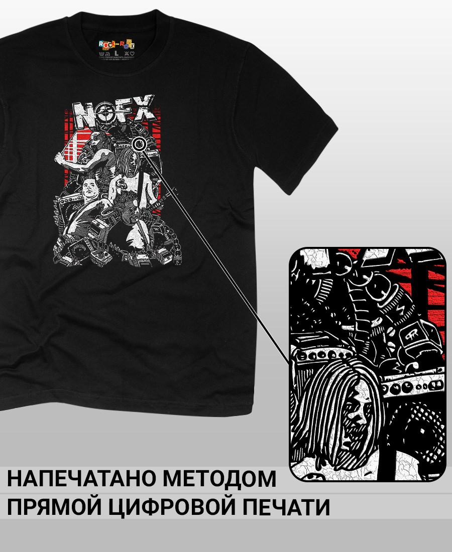 Футболка унисекс из 100% хлопка с рок-принтом NOFX от бренда Rock-Rock - это идеальный выбор для поклонников группы и всех, кто ценит уникальный стиль. Эта мужская футболка изготовлена из высококачественного хлопка, обеспечивающего комфорт и долговечность. Подходит как мужчинам так и женшинам. Можно носить как оверсайз. Эта майка стильный и универсальный предмет одежды, который олицетворяет энергию и мощь рок-музыки. Уникальный рисунок с изображением NOFX на передней части делает эту футболку не только повседневным аксессуаром, но и отличным подарком для друзей и близких. Сочетайте её с джинсами или шортами для создания стильного и современного образа. Футболка унисекс и подходит для мужчин, женщин и подростков, что делает его весьма универсальным. Она имеет свободный и комфортный крой, который можно использовать как oversize или оверсайз. Стильная футба с рок принтом будет прекрасным дополнением вашего образа и подчеркнет вашу индивидуальность. Рисунок, сделанный цифровой печатью, будет свежим акцентом вашего гардероба и привлечет внимание окружающих. Крутой принт добавляет оригинальности и энергии этому стильному предмету гардероба. Молодежная подростковая аудитория, байкеры, увлекающиеся роком, Nirvana, Guns n Roses, панк, Misfits, Nirvana и альтернативными стилями, AC/DC, Metallica оценит этот яркий и стильный вариант одежды. Кроме того, черная или белая мужская футба подходит для любителей эмо одежды, гранж и рок-стиля и её можно использовать как черную женскую футболку.
