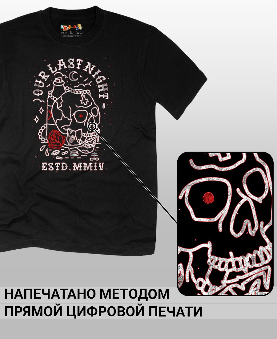 Футболка унисекс из 100% хлопка с рок-принтом Our last night от бренда Rock-Rock - это идеальный выбор для поклонников группы и всех, кто ценит уникальный стиль. Эта мужская футболка изготовлена из высококачественного хлопка, обеспечивающего комфорт и долговечность. Подходит как мужчинам так и женшинам. Можно носить как оверсайз. Эта майка стильный и универсальный предмет одежды, который олицетворяет энергию и мощь рок-музыки. Уникальный рисунок с изображением Our last night на передней части делает эту футболку не только повседневным аксессуаром, но и отличным подарком для друзей и близких. Сочетайте её с джинсами или шортами для создания стильного и современного образа. Футболка унисекс и подходит для мужчин, женщин и подростков, что делает его весьма универсальным. Она имеет свободный и комфортный крой, который можно использовать как oversize или оверсайз. Стильная футба с рок принтом будет прекрасным дополнением вашего образа и подчеркнет вашу индивидуальность. Рисунок, сделанный цифровой печатью, будет свежим акцентом вашего гардероба и привлечет внимание окружающих. Крутой принт добавляет оригинальности и энергии этому стильному предмету гардероба. Молодежная подростковая аудитория, байкеры, увлекающиеся роком, Nirvana, Guns n Roses, панк, Misfits, Nirvana и альтернативными стилями, AC/DC, Metallica оценит этот яркий и стильный вариант одежды. Кроме того, черная или белая мужская футба подходит для любителей эмо одежды, гранж и рок-стиля и её можно использовать как черную женскую футболку.