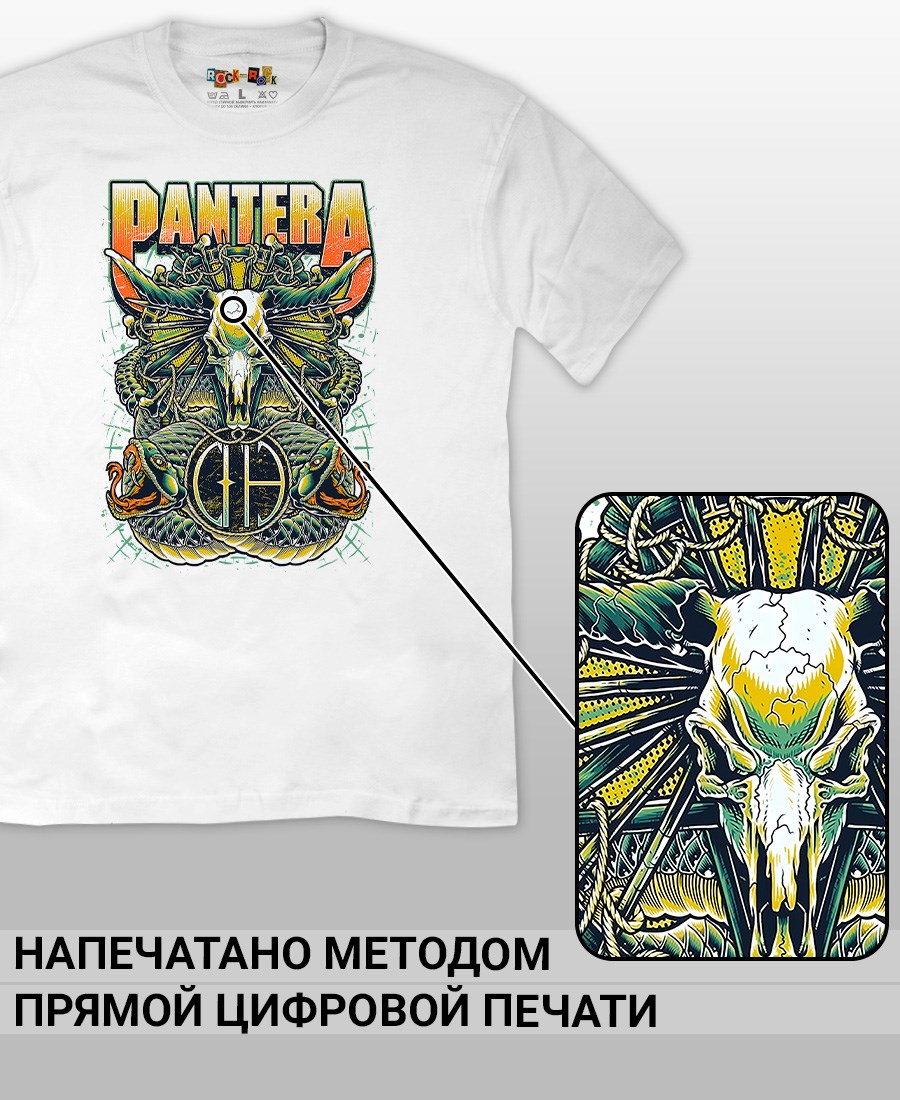 Футболка унисекс из 100% хлопка с рок-принтом Pantera от бренда Rock-Rock - это идеальный выбор для поклонников группы и всех, кто ценит уникальный стиль. Эта мужская футболка изготовлена из высококачественного хлопка, обеспечивающего комфорт и долговечность. Подходит как мужчинам так и женшинам. Можно носить как оверсайз. Эта майка стильный и универсальный предмет одежды, который олицетворяет энергию и мощь рок-музыки. Уникальный рисунок с изображением Pantera на передней части делает эту футболку не только повседневным аксессуаром, но и отличным подарком для друзей и близких. Сочетайте её с джинсами или шортами для создания стильного и современного образа. Футболка унисекс и подходит для мужчин, женщин и подростков, что делает его весьма универсальным. Она имеет свободный и комфортный крой, который можно использовать как oversize или оверсайз. Стильная футба с рок принтом будет прекрасным дополнением вашего образа и подчеркнет вашу индивидуальность. Рисунок, сделанный цифровой печатью, будет свежим акцентом вашего гардероба и привлечет внимание окружающих. Крутой принт добавляет оригинальности и энергии этому стильному предмету гардероба. Молодежная подростковая аудитория, байкеры, увлекающиеся роком, Nirvana, Guns n Roses, панк, Misfits, Nirvana и альтернативными стилями, AC/DC, Metallica оценит этот яркий и стильный вариант одежды. Кроме того, черная или белая мужская футба подходит для любителей эмо одежды, гранж и рок-стиля и её можно использовать как черную женскую футболку.