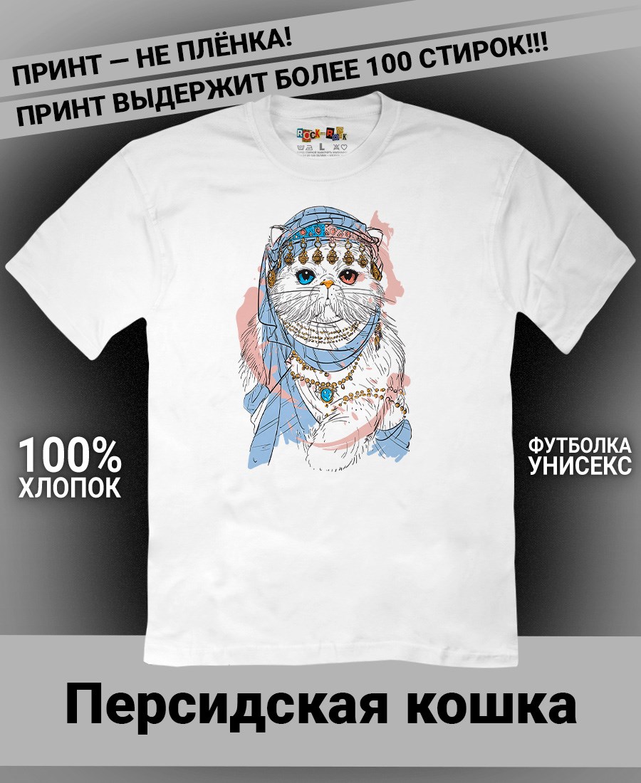 Футболка унисекс из 100% хлопка с шикарным принтом Персидская кошка от бренда Rock-Rock - это идеальный выбор для поклонников котов и кошек породы Персидская кошка и всех, кто ценит уникальный стиль. Эта мужская футболка изготовлена из высококачественного хлопка, обеспечивающего комфорт и долговечность. Подходит как мужчинам так и женщинам. Можно носить как оверсайз. Уникальный рисунок с изображением Персидская кошка на передней части делает эту футболку не только повседневным аксессуаром, но и отличным подарком для друзей и близких. Сочетайте её с джинсами или шортами для создания стильного и современного образа. Футболка унисекс и подходит для мужчин, женщин и подростков, что делает его весьма универсальным. Она имеет свободный и комфортный крой, который можно использовать как oversize или оверсайз. Стильная футба с принтом с кошкой будет прекрасным дополнением вашего образа и подчеркнет вашу индивидуальность. Рисунок, сделанный цифровой печатью, будет свежим акцентом вашего гардероба и привлечет внимание окружающих. Крутой принт добавляет оригинальности и энергии этому стильному предмету гардероба. Молодежная подростковая аудитория, любители котов, любители кошек, Британская короткошёрстная, Мейн-кун, Сибирская кошка, Бенгальская кошка, Ориентальная кошка, Шотландская вислоухая, Абиссинская кошка, Экзот, Манчкин, Сингапура, Корниш-рекс, Персидская кошка, Шотландская прямоухая, Русская голубая, Британская длинношёрстная, Невская маскарадная, Сиамская кошка, Рэгдолл, Сфинкс, Египетская мау.