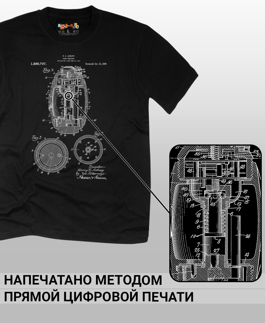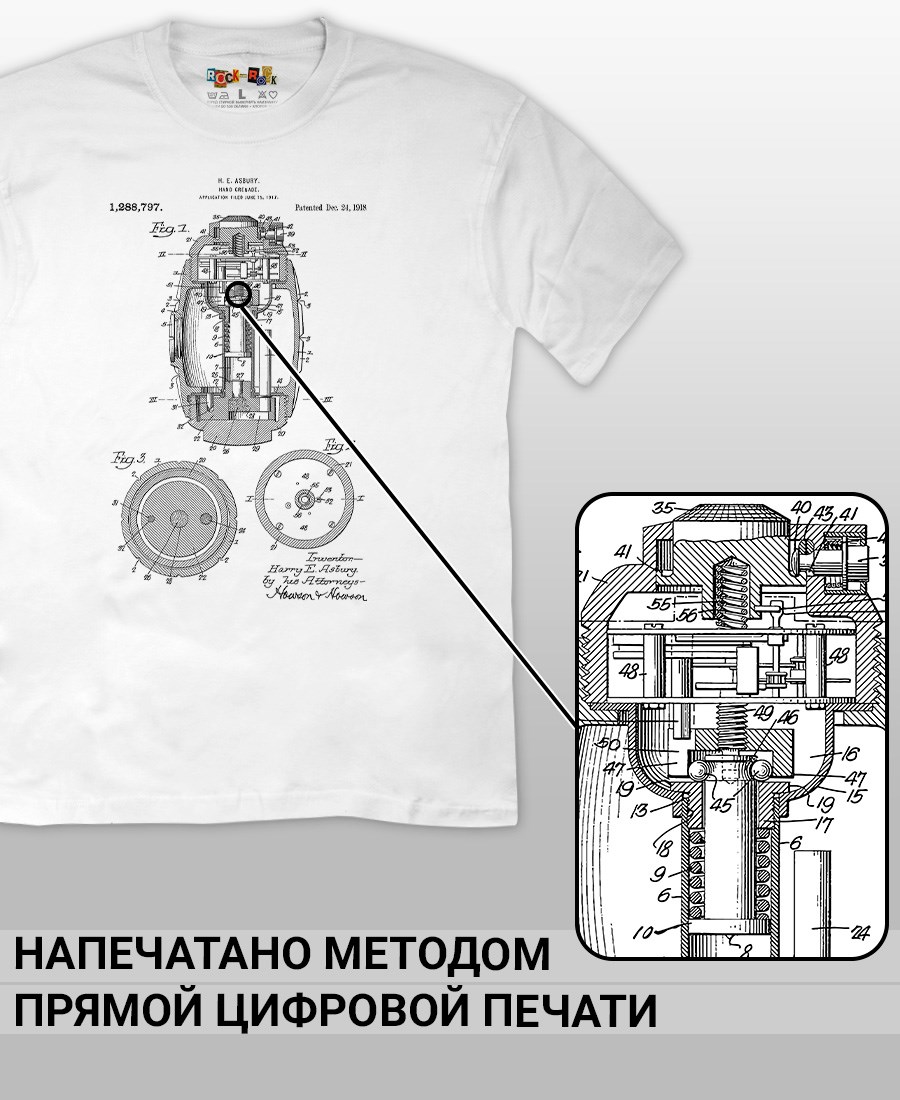 Футболки унисекс, чёрные и белые футболки с изображением патента Ручная граната, 1918 год. Эта модель футболки подходит как мужчинам, так и женщинам, а также адаптируется к различным типам фигуры. Наши принты выполнены методом полноцветной цифровой печати, что обеспечивает высокую износостойкость и насыщенность цветов. Ткань из 100 % хлопка и качественная печать гарантируют сохранение цвета и формы изделия после более чем 100 стирок. В этой серии представлены футболки с патентами на револьверы, ружья, автоматы, гранаты, охотничьи ножи. Также у нас есть футболки с изображениями патентов на тему Авто, Авиация; Видео и фото; Деньги; Игры и игрушки; Мода, стиль, красота; Мореплавание; Мото и вело; Музыка; Оружие и охота; Профессии и призвания. Ищите также по запросам: футболка для мужчин, мужские футболки, крутая футболка, футболка женская с принтом, футболка мужская с принтом, футболка на день рождения, необычная футболка, необычный подарок, футболка на вечеринку, качественная футболка, шикарная футболка, модная футболка, футболка для подарка, крутая футболка, футболка хайп, подарок парню, подарок коллекционеру, подарок охотнику, подарок воину, ретро стиль, винтажная, ностальгия, аналоговая эстетика, олдскул техника.