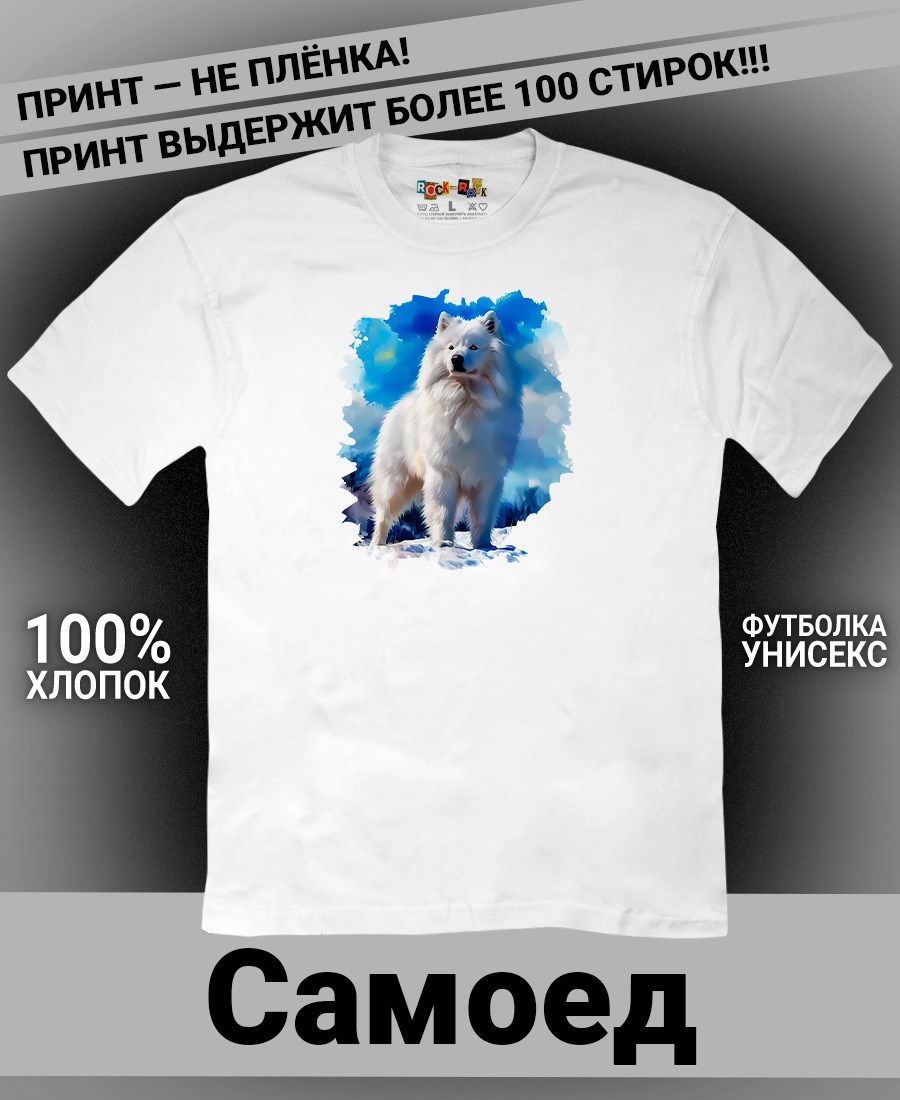 Футболка унисекс из 100% хлопка с шикарным принтом Самоед от бренда Rock-Rock - это идеальный выбор для поклонников собак породы Самоед и всех, кто ценит уникальный стиль. Эта мужская футболка изготовлена из высококачественного хлопка, обеспечивающего комфорт и долговечность. Подходит как мужчинам так и женщинам. Можно носить как оверсайз. Уникальный рисунок с изображением Самоед на передней части делает эту футболку не только повседневным аксессуаром, но и отличным подарком для друзей и близких. Сочетайте её с джинсами или шортами для создания стильного и современного образа. Футболка унисекс и подходит для мужчин, женщин и подростков, что делает его весьма универсальным. Она имеет свободный и комфортный крой, который можно использовать как oversize или оверсайз. Стильная футба с принтом с собакой будет прекрасным дополнением вашего образа и подчеркнет вашу индивидуальность. Рисунок, сделанный цифровой печатью, будет свежим акцентом вашего гардероба и привлечет внимание окружающих. Крутой принт добавляет оригинальности и энергии этому стильному предмету гардероба. Молодежная подростковая аудитория, любители собак, Вельш-корги, Спаниель, Лабрадор-ретривер, Американский стаффордширский терьер, Доберман, Золотистый ретривер, Бигль, Мопс, Такса, Цвергпинчер, Бультерьер, Ши-цу, Корги, Сиба-Ину, Бульдог, Шпиц, Уиппет, Ретривер, Питбуль, Далматинец.