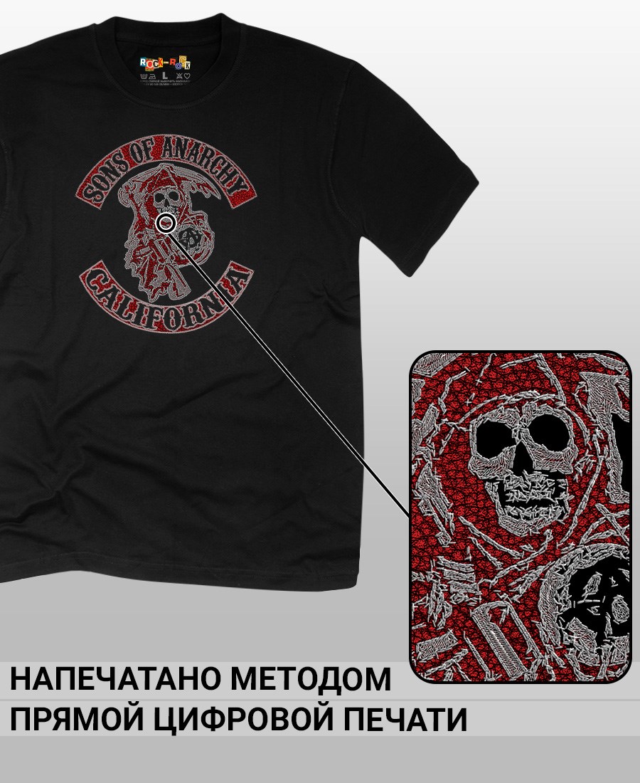 Футболка унисекс из 100% хлопка с рок-принтом Sons of Anarchy от бренда Rock-Rock - это идеальный выбор для поклонников группы и всех, кто ценит уникальный стиль. Эта мужская футболка изготовлена из высококачественного хлопка, обеспечивающего комфорт и долговечность. Подходит как мужчинам так и женшинам. Можно носить как оверсайз. Эта майка стильный и универсальный предмет одежды, который олицетворяет энергию и мощь рок-музыки. Уникальный рисунок с изображением Sons of Anarchy на передней части делает эту футболку не только повседневным аксессуаром, но и отличным подарком для друзей и близких. Сочетайте её с джинсами или шортами для создания стильного и современного образа. Футболка унисекс и подходит для мужчин, женщин и подростков, что делает его весьма универсальным. Она имеет свободный и комфортный крой, который можно использовать как oversize или оверсайз. Стильная футба с рок принтом будет прекрасным дополнением вашего образа и подчеркнет вашу индивидуальность. Рисунок, сделанный цифровой печатью, будет свежим акцентом вашего гардероба и привлечет внимание окружающих. Крутой принт добавляет оригинальности и энергии этому стильному предмету гардероба. Молодежная подростковая аудитория, байкеры, увлекающиеся роком, Nirvana, Guns n Roses, панк, Misfits, Nirvana и альтернативными стилями, AC/DC, Metallica оценит этот яркий и стильный вариант одежды. Кроме того, черная или белая мужская футба подходит для любителей эмо одежды, гранж и рок-стиля и её можно использовать как черную женскую футболку.