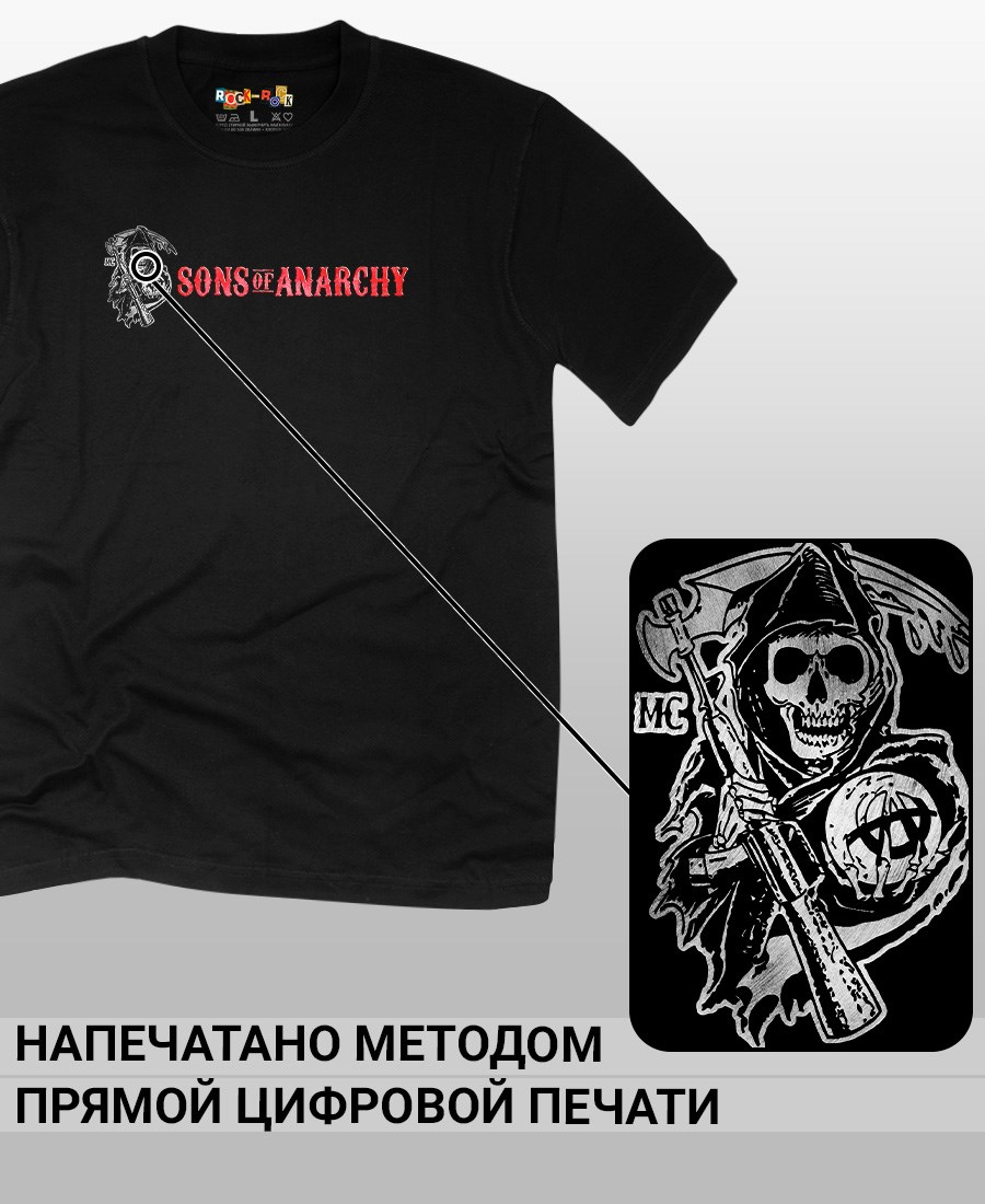 Футболка унисекс из 100% хлопка с рок-принтом Sons of Anarchy от бренда Rock-Rock - это идеальный выбор для поклонников группы и всех, кто ценит уникальный стиль. Эта мужская футболка изготовлена из высококачественного хлопка, обеспечивающего комфорт и долговечность. Подходит как мужчинам так и женшинам. Можно носить как оверсайз. Эта майка стильный и универсальный предмет одежды, который олицетворяет энергию и мощь рок-музыки. Уникальный рисунок с изображением Sons of Anarchy на передней части делает эту футболку не только повседневным аксессуаром, но и отличным подарком для друзей и близких. Сочетайте её с джинсами или шортами для создания стильного и современного образа. Футболка унисекс и подходит для мужчин, женщин и подростков, что делает его весьма универсальным. Она имеет свободный и комфортный крой, который можно использовать как oversize или оверсайз. Стильная футба с рок принтом будет прекрасным дополнением вашего образа и подчеркнет вашу индивидуальность. Рисунок, сделанный цифровой печатью, будет свежим акцентом вашего гардероба и привлечет внимание окружающих. Крутой принт добавляет оригинальности и энергии этому стильному предмету гардероба. Молодежная подростковая аудитория, байкеры, увлекающиеся роком, Nirvana, Guns n Roses, панк, Misfits, Nirvana и альтернативными стилями, AC/DC, Metallica оценит этот яркий и стильный вариант одежды. Кроме того, черная или белая мужская футба подходит для любителей эмо одежды, гранж и рок-стиля и её можно использовать как черную женскую футболку.