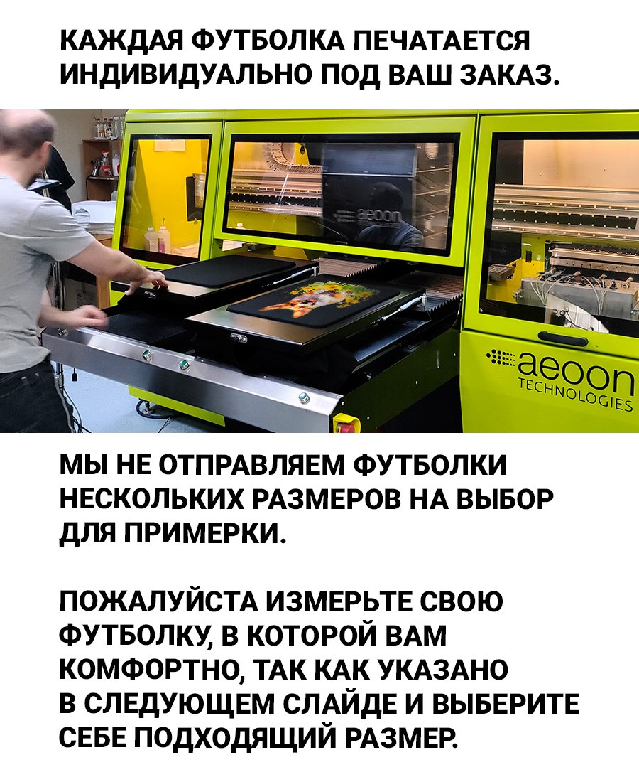Мы НЕ ОТПРАВЛЯЕМ футболки нескольких размеров на выбор для примерки. Каждая футболка печатается индивидуально под ваш заказ.